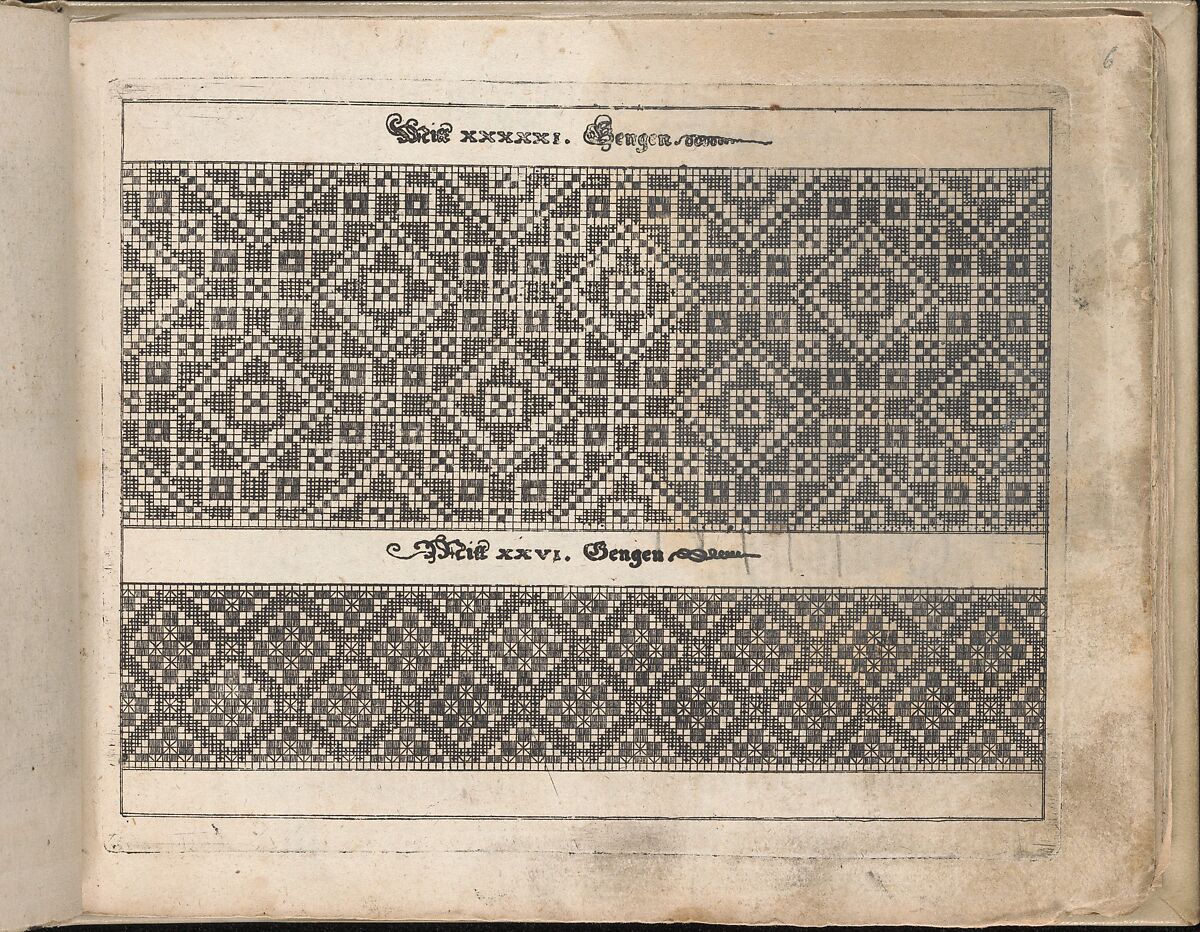 Illustrated title signed CM and Jo. Sibmacher, 7 pages of text surrounded by decorative borders, and 35 pages of designs for weaving, embroidery, and cut-linen.