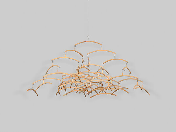 Man Ray found inspiration for Obstruction in a heap of discarded coat hangers. He suspended one from the ceiling of his studio and then drilled a hole in each end, added another, and repeated the task again and again. As it multiplied in a precarious feat of balance, the assemblage nearly overtook his space. The artist explained that he had imagined continuing the process, “since they are . . . an arithmetic progression. . . . I could have put many more, until it completely filled the gallery, but as it was, one could no longer enter.”