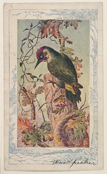 - Title: Woodpecker, collector card from the Bird Pictures series (D18), issued by the Schulze Baking Company to promote their product, Butter-Krust Bread