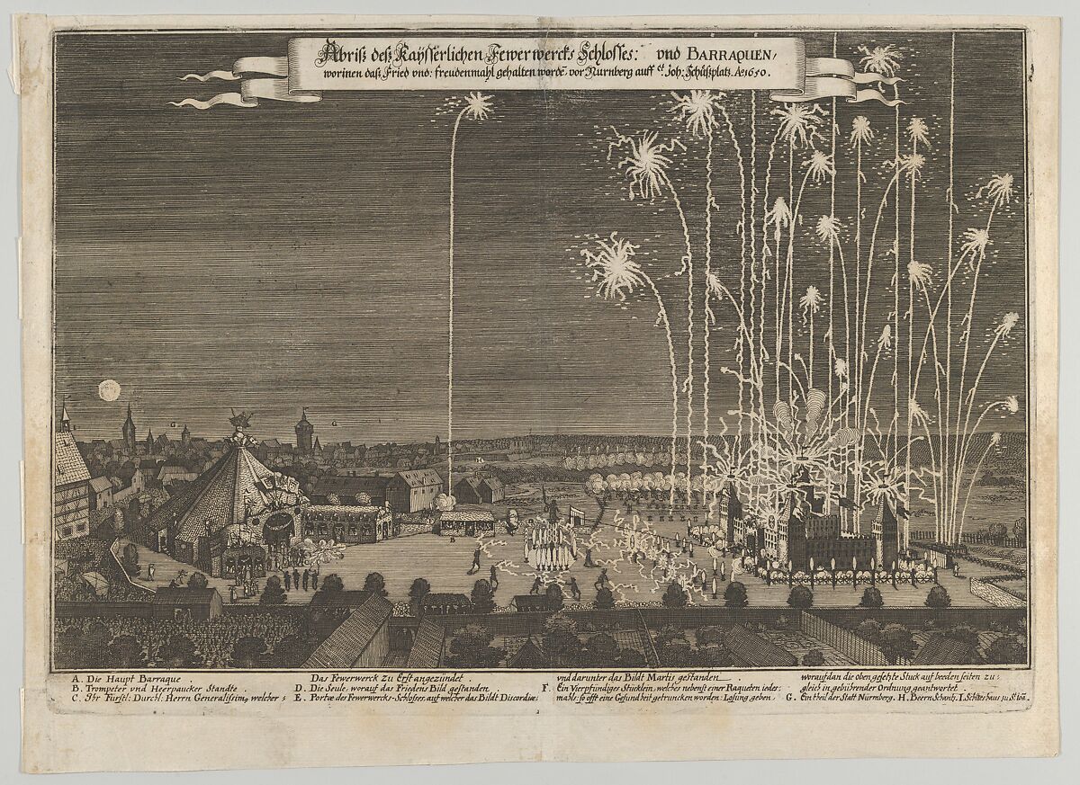 - Title: Fireworks display celebrating the end of the Thirty Years War, Nuremberg, 1650