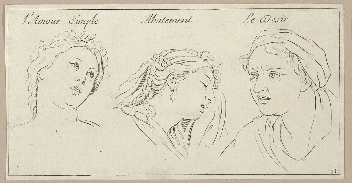 l'Amour simple, Abattement, Le Desir, from "Caractères des passions, gravés sur les desseins de l'illustre Monsieur le Brun"