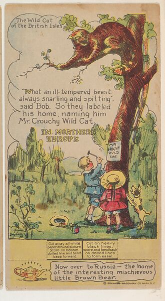 - Title: The Wild Cat of the British Isles, Northern Europe, collector card from the Dotty, Bob and Trix Cards series (D27), issued by the Pryor Baking Company