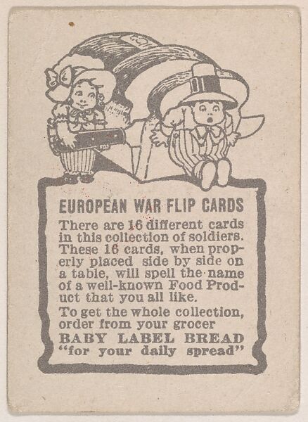 - Title: Card verso, bakery insert from the European War Flip Cards series (D28), issued by the Welle-Boettler Bakery Company