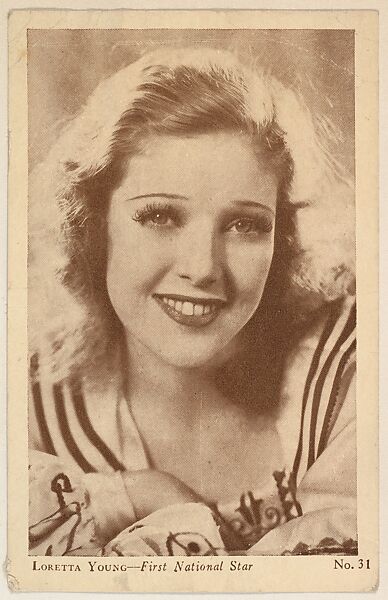 - Title: Loretta Young, No. 31, bakery card from the Film Stars series (D32), issued by the Drake Brothers Bakery