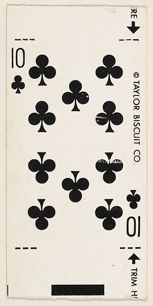 - Title: 10 of Clubs, bakery card from the Playing Cards series (D98), issued by the Taylor Biscuit Company