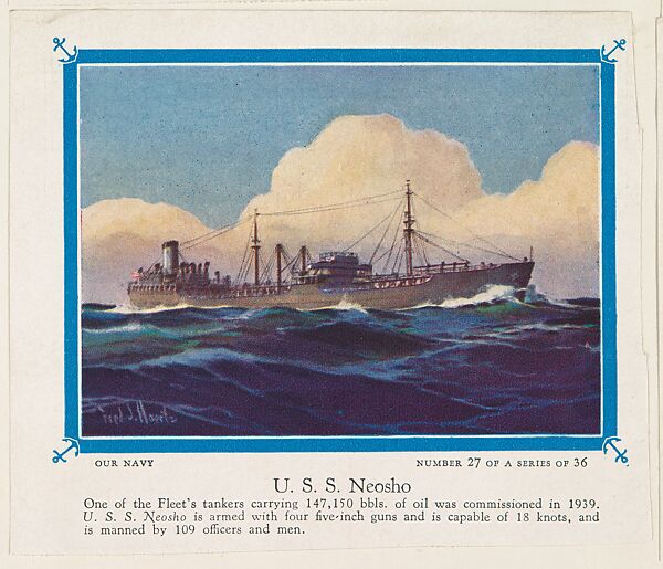 - Title: No. 27, U. S. S. Neosho, collector card from the Our Navy series (D62), issued by the Kelley Baking Company