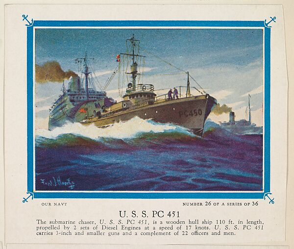 - Title: No. 26, U. S. S. PC 451, collector card from the Our Navy series (D62), issued by the Kelley Baking Company