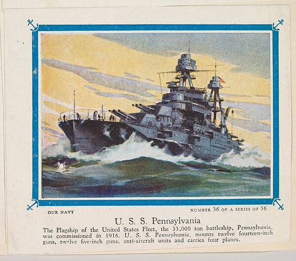 - Title: No. 36, U. S. S. Pennsylvania, collector card from the Our Navy series (D62), issued by the Kelley Baking Company