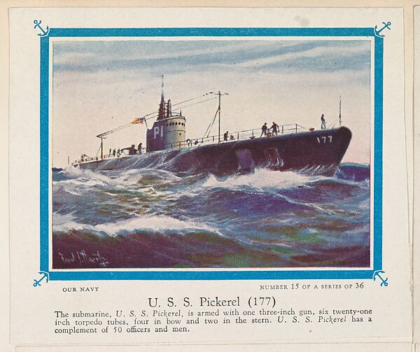- Title: No. 15, U. S. S. Pickerel (177), collector card from the Our Navy series (D62), issued by the Kelley Baking Company
