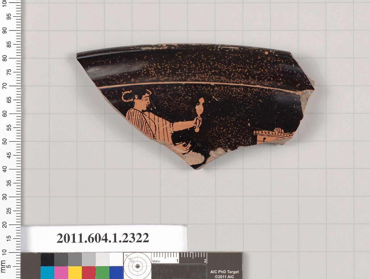- Title: Terracotta rim fragment of a kylix (drinking cup)