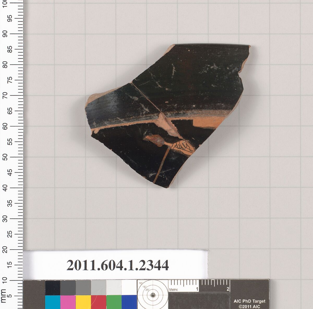 - Title: Terracotta rim fragment of a kylix (drinking cup)