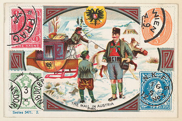 - Title: The Mail in Austria, bakery card from the Stamps and Mail Carriers of All Nations series (D73), issued by the Rochester Baking Company