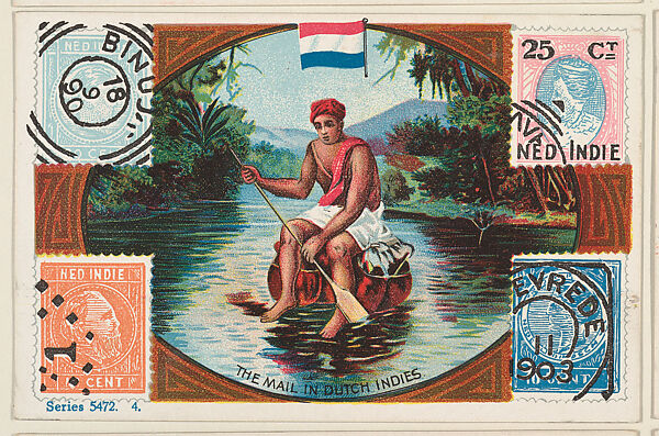 - Title: The Mail in Dutch Indies, bakery card from the Stamps and Mail Carriers of All Nations series (D73), issued by the Rochester Baking Company