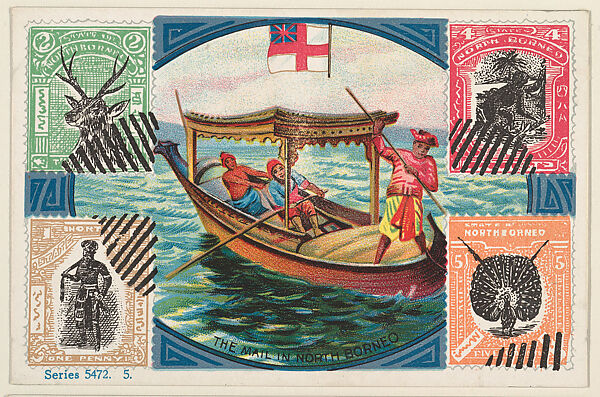 - Title: The Mail in North Borneo, bakery card from the Stamps and Mail Carriers of All Nations series (D73), issued by the Rochester Baking Company