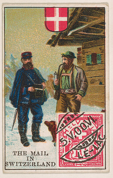 - Title: The Mail in Switzerland, bakery card from the Stamps and Mail Carriers of All Nations series (D73), issued by the Rochester Baking Company