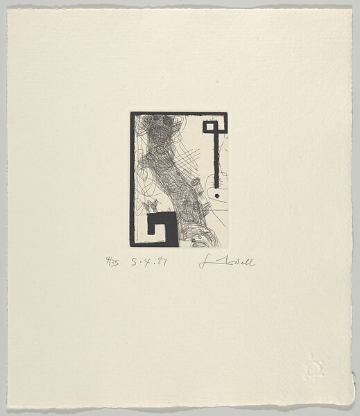 - Medium: Hardground etching with sugarlift aquatint; 4/35
