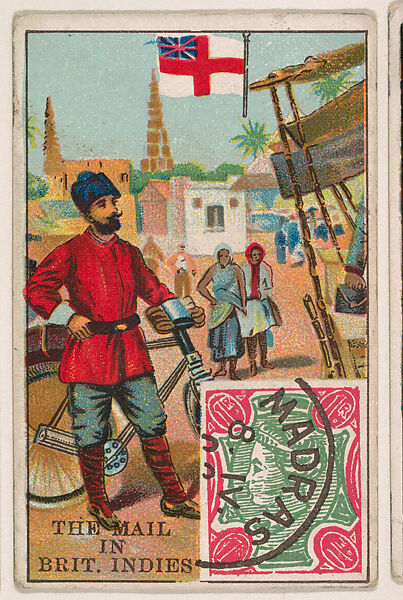 - Title: The Mail in British Indies, bakery card from the Stamps and Mail Carriers of All Nations series (D73), issued by the Rochester Baking Company