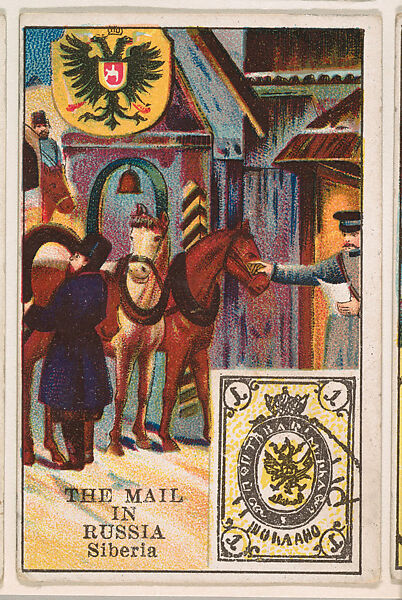 - Title: The Mail in Russia, bakery card from the Stamps and Mail Carriers of All Nations series (D73), issued by the Rochester Baking Company