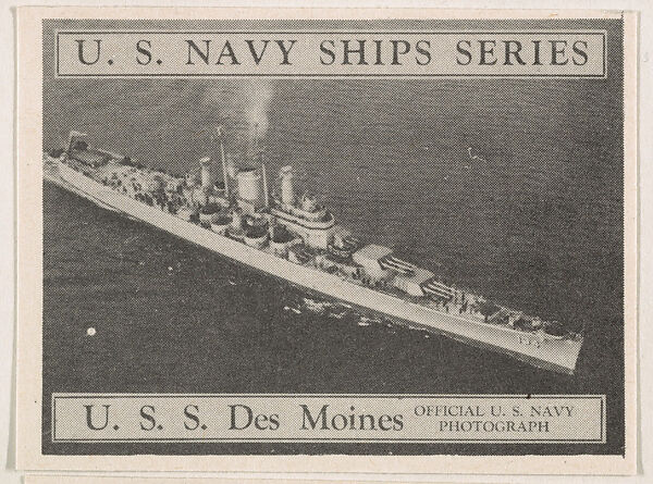 - Title: U. S. S. Des Moines, bakery card from the U. S. Planes and Warships series (D85)