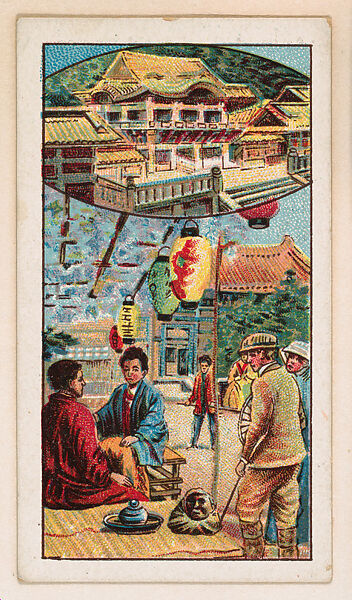 - Title: Nikko, The Great Gate of Yomel-Mon, In a coffee house, bakery card from the Around the World Series (D92), issued by White Star Bakery