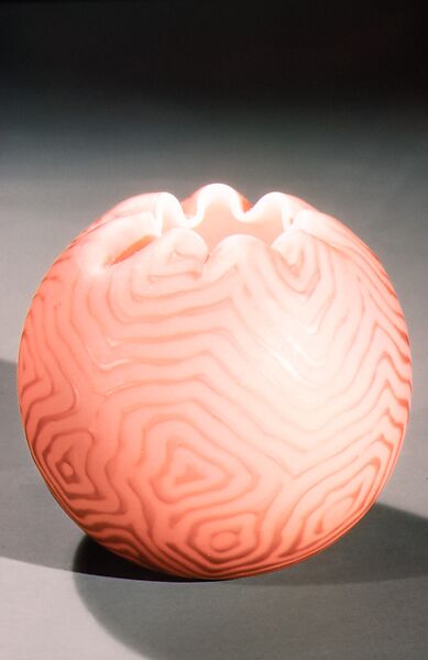 The number inscribed on the base of this bowl refers to the pattern registered with the Public Record Office in London. Records there indicate that "Design No. 58375 was registered by Thomas Webb and Sons of Dennis Glass Works, Stourbridge, on 8 October 1886 and relates to a design to be applied to 'A diaper of irregular lines forming a watery or wavy pattern upon the surface of the glass.'"