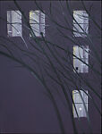 Like so much of Katz’s work, Purple Wind is a study in vivid color contrasts as well as dramatic visual and spatial effects. Here the artist depicts a haunting image of a barren tree set in relief against an apartment building at night. The windows of the structure, which appear to be illuminated from within, are not so much represented as they are suggested through the application of ten perpendicular brushstrokes on a purple ground. The branches of the tree are similarly rendered with single swipes of the brush. The composition that results is as much musical as it is visual: Katz carefully choreographs the relationship between diagonal, horizontal, and vertical lines in order to create a sense of rhythmic movement.