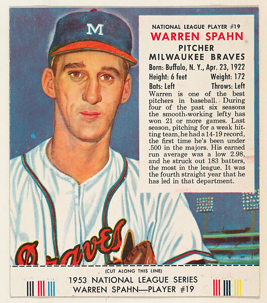 - Title: Warren Spahn, from the Red Man All-Star Team series (T233), issued by Red Man Chewing Tobacco