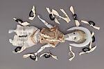 This glass marionette is a character from The Secrets of Karbalaa, the third in Shawky’s film trilogy Cabaret Crusades (2010–14). Based on French-Lebanese writer Amin Maalouf’s book The Crusades Through Arab Eyes (1983), the film follows the military campaigner Salah El Din as power transferred from Shiite to Sunni hands in Egypt during the Crusades in the eleventh to thirteenth centuries. In Shawky’s retelling, Muslims battle Muslims and Christians attack Christians, correcting the tendency to define this period solely as a confrontation between Islam and Christianity or East and West. The fantastical designs of Shawky’s marionettes are conceived from a variety of sources, including masks and other figurative works from sub-Saharan Africa from The Met collection. At times exhibited alongside the film and also shown as autonomous art objects, the sculptures blur conventional categories of identity and affiliation.