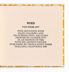 - Medium: Artist's book with five drypoints (one with aquatint) with pencil and colored pencil additions