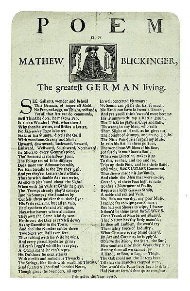 - Title: Poem on Mathew Buckinger [sic], The Greatest German Living
