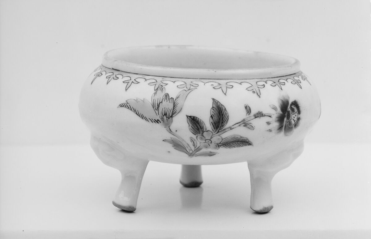 Chinese export porcelain was one of the luxuries deemed essential to a well-appointed eighteenth-century house. Until 1784, when direct trade began between China and America, Chinese porcelain came to the colonies by way of Europe. This saltcellar was part of a large service that descended in the Verplanck family of New York.