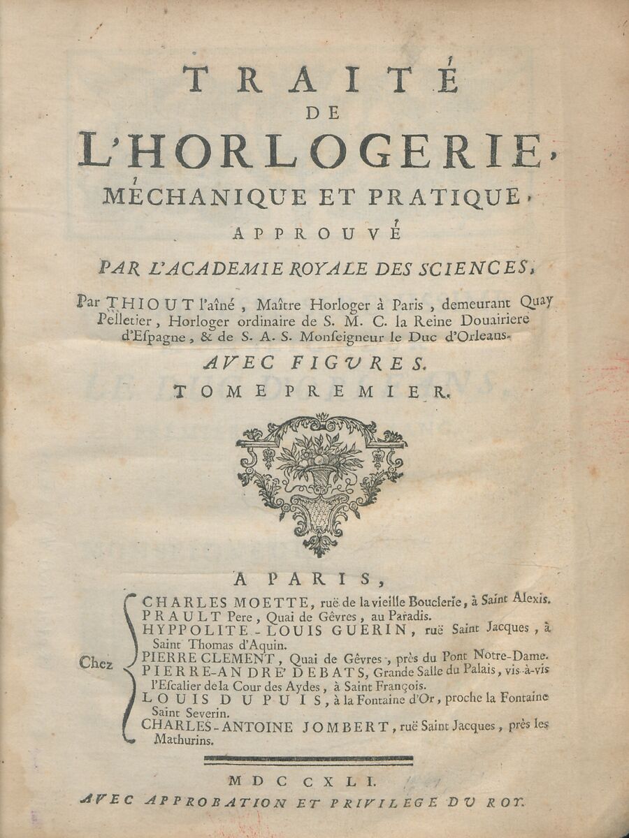 - Title: Traité de l'horlogerie, méchanique et pratique, approuvé par l'Academie royale des sciences