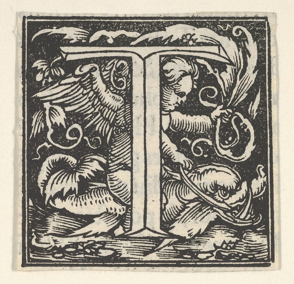- Title: Initial letter T with putto
