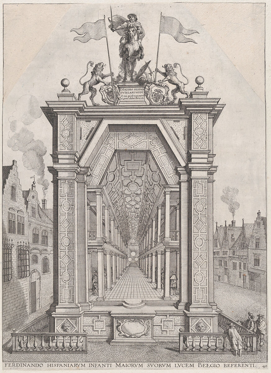 - Title: Plate 40: Design for festival architecture honoring the Spanish Prince Ferdinand's triumphal entry into the city of Ghent, January 28, 1635; from Guillielmus Becanus's 'Serenissimi Principis Ferdinandi, Hispaniarum Infantis...'