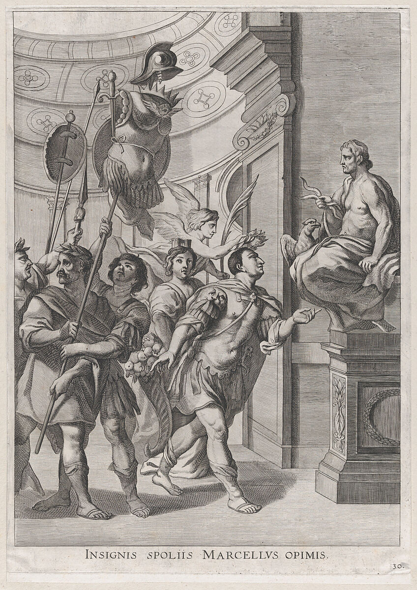 - Title: Plate 30: Marcellus dedicating the spoils of war to Jupiter; from Guillielmus Becanus's 'Serenissimi Principis Ferdinandi, Hispaniarum Infantis...'