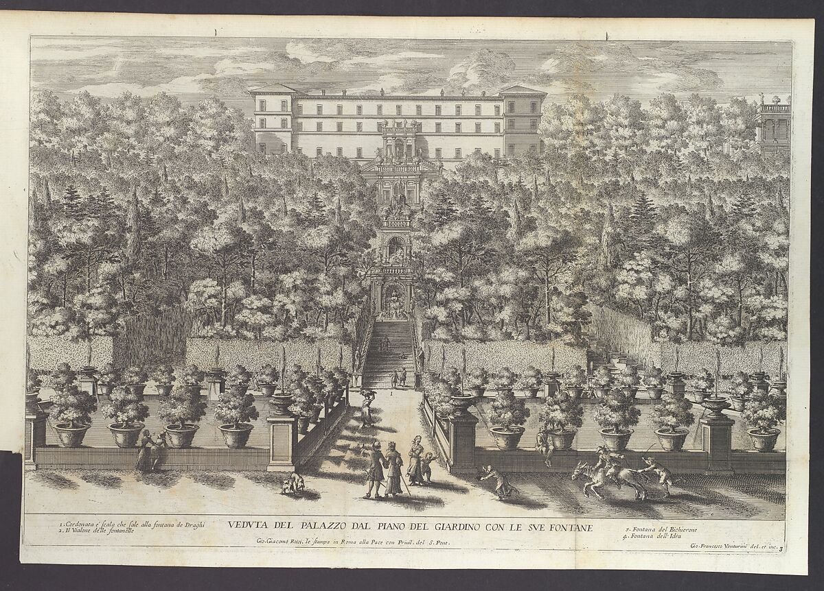 - Title: Veduta del Palazzo dal Piano del Giardino con le sue Fontane, from "La Fontane di Roma nelle Piazze e Luoghi Publici (...)", part 4, 'Le Fontane del Giardino Estense in Tivoli' (plate 3)