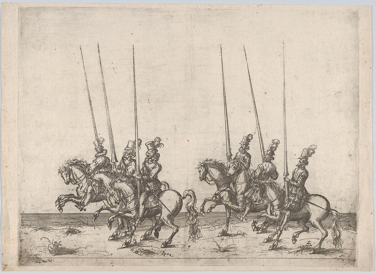 - Title: Procession, with six men riding horses