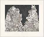 McClelland engages the appearance, sounds, structures, and regulations of language in its various forms by examining found passages, both written and spoken, from which she “lifts” fragments. In Mr. Man she distorts letters, turning them into near abstractions; while some hint at words, most represent only themselves, with the two towering mounds recalling piles of discarded sounds, texts, or thoughts. McClelland defies the dictates for reading (which in English involve moving from left to right and from top to bottom, a structure Johns applied in Gray Alphabets), instead making visible stutters, repetitions, ellipses, and other irregularities of oral rhythms. The title, Mr. Man, refers to an insult hurled against a celebrated writer in the Stephen King book Misery by a character memorable for her refusal to use crude language.