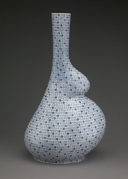 Elif Uras is a painter and ceramist whose work questions the role of women in society and engages with the long span of Turkey’s material and cultural past. She focuses on what she describes as "shifting notions of gender and class within the context of the struggle between modernity and tradition." Her imagery merges traditional nonfigurative Anatolian art with the figurative tradition, while also exploring the representation of the female body across cultures. Since 2007, she has become particularly interested in ceramics from Iznik (originally Nicaea), an ancient town in the northwestern Anatolia region of Turkey celebrated for its tile and ceramic production during the Ottoman Empire; there, Uras is working alongside artisans trained in the Ottoman style at the Iznik Foundation. Tasks exclusively performed by men during Ottoman times are today managed by women workers, artisans, and entrepreneurs at the Iznik Foundation. Uras’s sensuous vessels, which sometimes allude to the pregnant belly, such as "Pregnant Haliç II," are an homage to these authoritative modern women in Iznik, placing the female figure at the center. "Pregnant Haliç II" takes its name, spiraling floral decoration, and blue-and-white color palette from a group of 16th-century Iznik ceramics discovered in the Haliç (Golden Horn) neighborhood of Istanbul in the early 20th century.