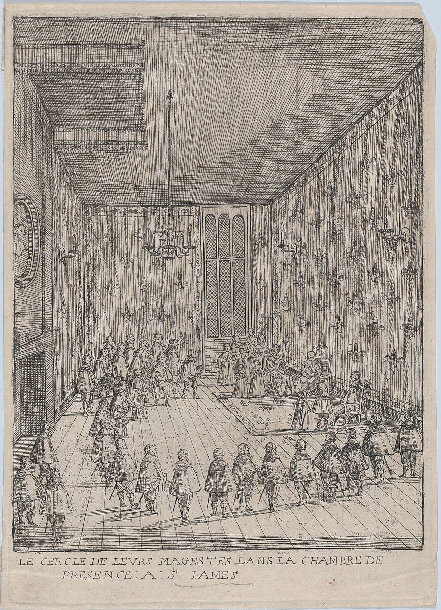 - Title: Le Cercle De Leurs Magestes Dans La Chambre De Presence: A: S. Iames; illustration from 'Histoire de l'entrée de la Reyne Mère dans la Grande Brètaigne'