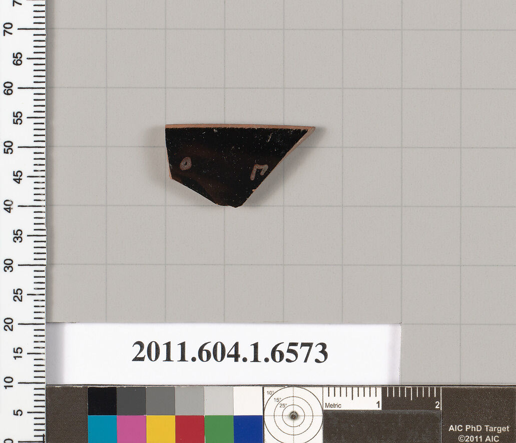 - Title: Terracotta rim fragment of a kylix (drinking cup)