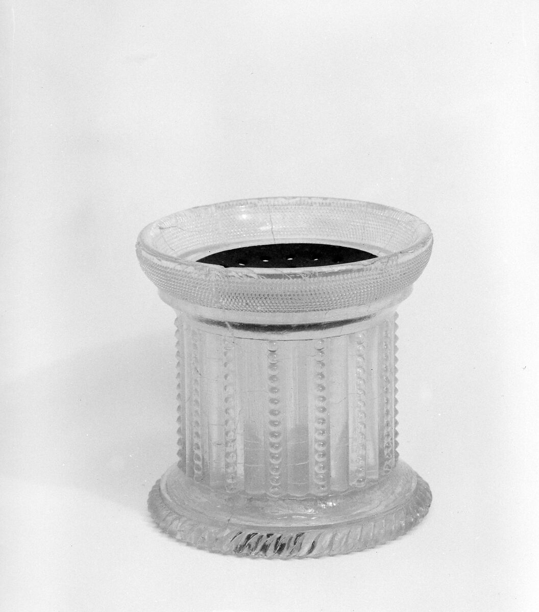- Medium: Lacy pressed glass, metal