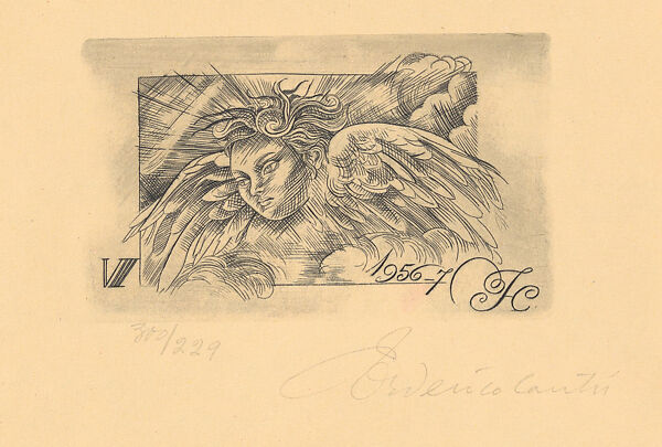 - Title: Head and wings of an angel, from a series of prints made as Christmas cards for Luis García Lecuona