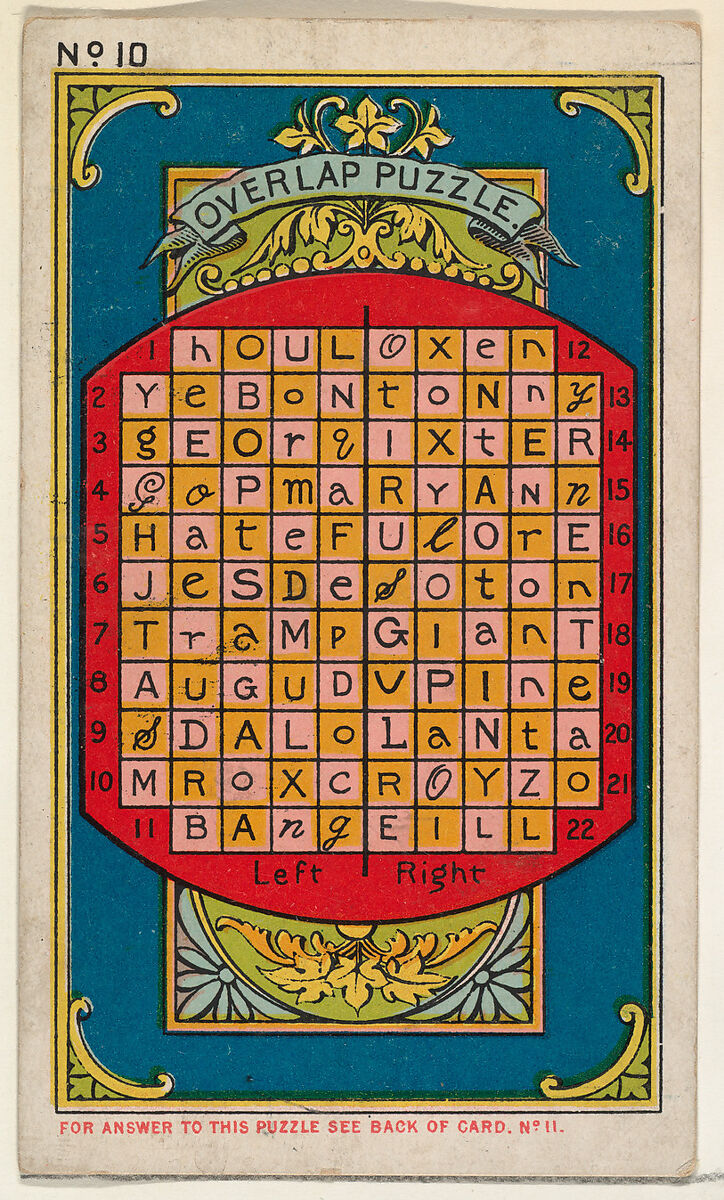 - Title: Puzzle Card Number 10, The "Overlap" Puzzle, from the Jokes series (N118) issued by Duke Sons & Co. to promote Honest Long Cut Tobacco
