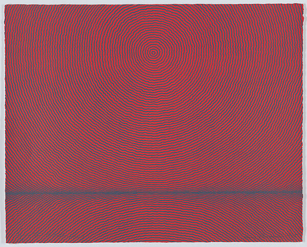 Pearson’s attention to the graphic quality of lines reflects the influence of the topographical maps he observed, and the related contour drawings he created, while in the U.S. Army during World War II. Gyros III, Gyros IV, and Gyros V are printed from the same stone, but by altering his palette, Pearson illustrates the dramatic effects of different color combinations. The works’ titles refer to a spinning form that has the ability to rotate on two perpendicular axes, resulting in tension between the opposing directions. Because of the dramatic retinal sensations produced by Pearson’s boldly contrasting tones and undulating lines, his work was included in several Op (short for "optical") art exhibitions. However, he resisted this association because of the "romantic nuance" he claimed his works contain.