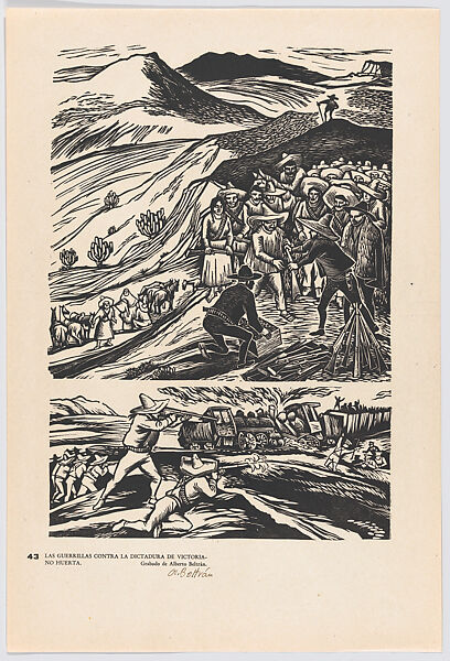 - Title: Plate 43: two scenes relating to the activities of the guerrillas fighting against the Victoriano Huerta regime, from "Estampas de la Revolución Mexicana" (Prints of the Mexican Revolution)