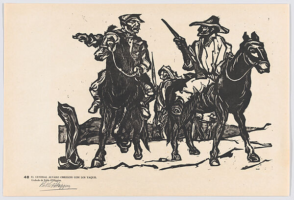 - Title: Plate 48: General Alvaro Obregon, leader of the Constitutionalists, on horse with the Yaqui indians, from "Estampas de la Revolución Mexicana" (Prints of the Mexican Revolution)