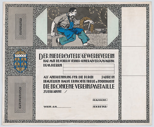 - Title: Design for a certificate of citizenship, awarded by the city of Vienna
