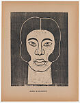 - Title: Head a woman facing the viewer, from the portfolio 'Los pequeños grabadores en madera, alumnos de la Escuela Preparatoria de Jalisco' (Guadalajara, Mexico 1925).