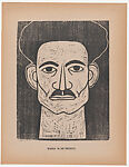 - Title: Head a man facing the viewer, from the portfolio 'Los pequeños grabadores en madera, alumnos de la Escuela Preparatoria de Jalisco' (Guadalajara, Mexico 1925).
